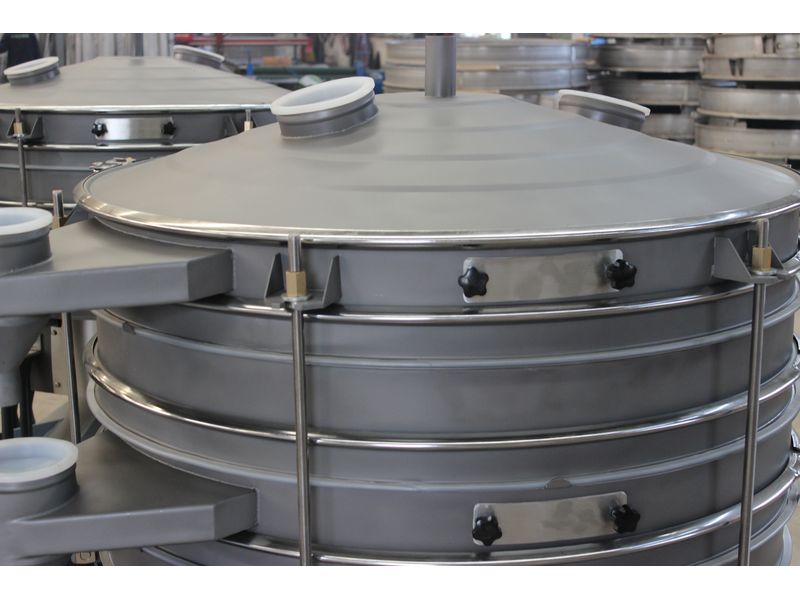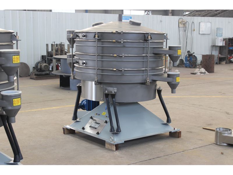2、每一種產品的停留時間可以通過搖擺篩的徑向與切角朝驅動軸方向進行調整因此建立水平與拋擲三維翻滾運動。物料從中心到外緣在整個篩面上均勻分散,從而以螺旋運動往軸向傳播。細小顆粒從而完成了整個篩分過程。