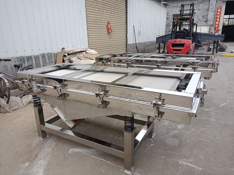 多層粉料直線振動(dòng)篩為雙振動(dòng)電機(jī)驅(qū)動(dòng),利用振動(dòng)電機(jī)激振的原理工作。當(dāng)兩臺(tái)電機(jī)作同步、反向旋轉(zhuǎn)時(shí),其偏心塊所產(chǎn)生的振動(dòng)力在平行于電機(jī)軸線的方向相互抵消,在振動(dòng)力和物料自重力的聯(lián)合作用下,使物料在篩面上被拋起跳躍式向前作直線運(yùn)動(dòng),以合理匹配篩網(wǎng)達(dá)到篩分的目的。